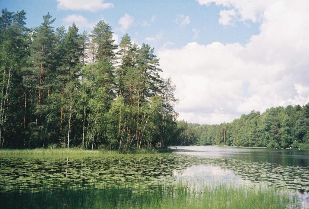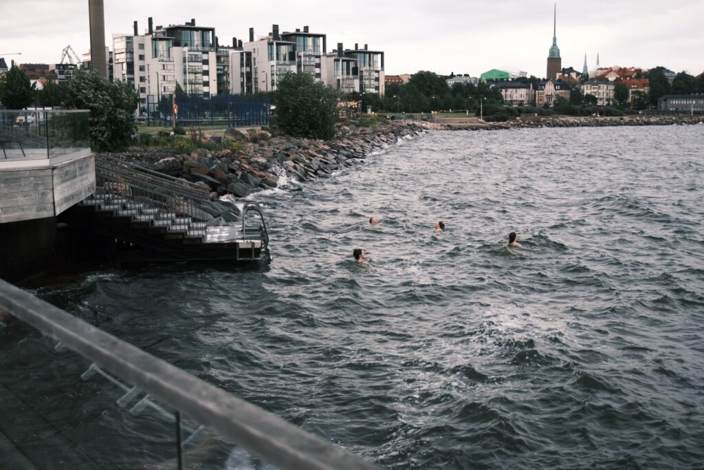 湖で優雅に泳ぐ人々や日本では見かけないような木々など、フィンランドの